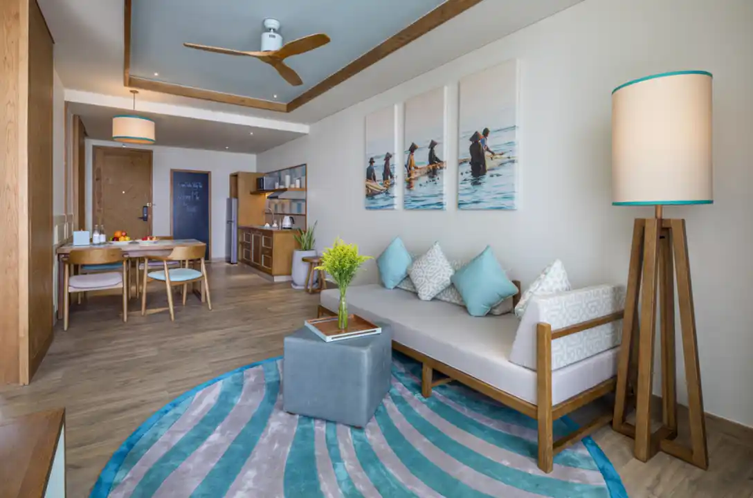 Fusion 2 Bedroom Apartment Sea View Partial - Diện tích: 68m2 - Giường: 2 giường đơn và 1 giường đôi - 1 phòng khách - Ban công/ Sân hiên Tính năng phòng bạn thích - Máy pha cà phê / trà - Máy lạnh - Nước nóng Tiện nghi phòng - Máy lạnh - Quạt - Nước đóng chai miễn phí - Máy pha cà phê / trà - Quầy bar mini - TV - Bàn làm việc - Két an toàn tại phòng - Rèm cửa / màn che - Bàn ủi Tiện nghi phòng tắm - Nước nóng - Phòng tắm riêng - Vòi tắm đứng - Bộ vệ sinh cá nhân - Máy sấy tóc - Áo choàng tắm Fusion Suites Vũng Tàu - Hotline: 02543657272 hoặc 0918447866 - Địa chỉ: 2 Trương Công Định , Phường 2 , Thành phố Vũng Tàu , Bà Rịa - Vũng Tàu