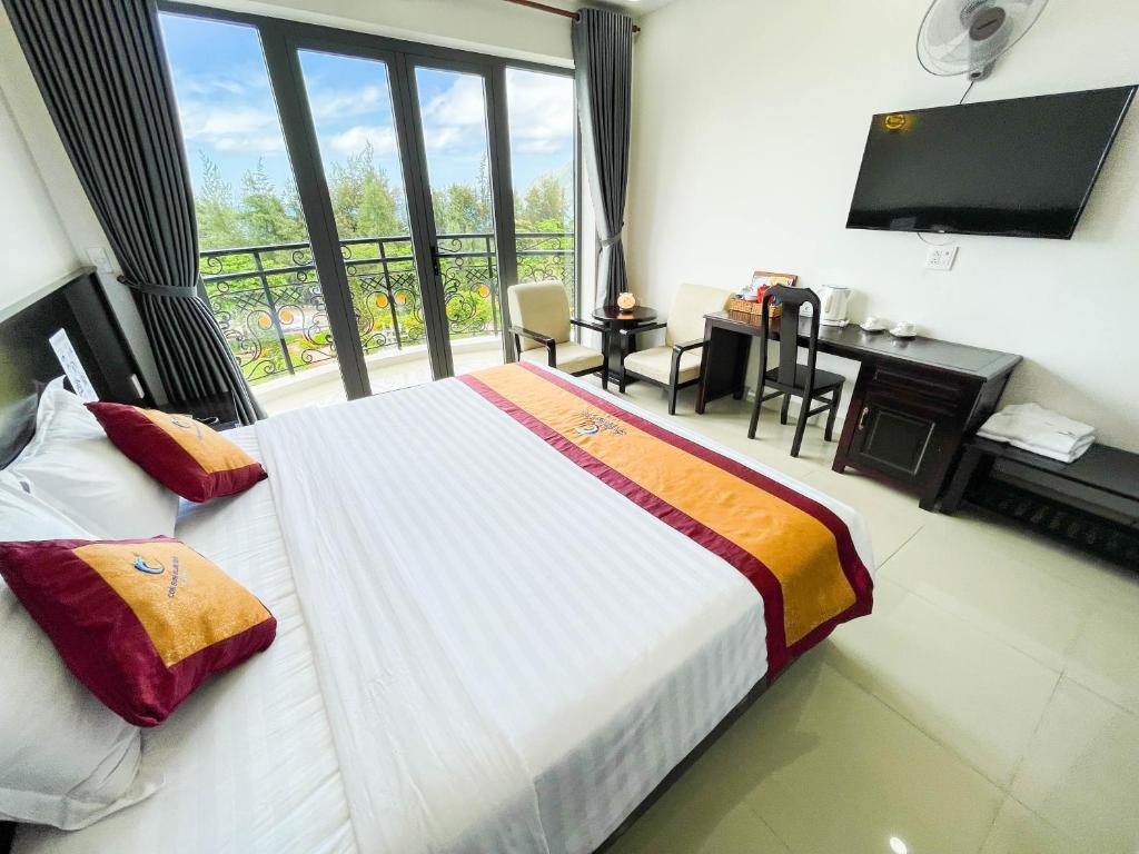 Phòng Deluxe - Con Son Blue Sea Hotel - Diện tích: 29m2 - Giường: 1 giường đôi cực lớn - Hướng: nhìn ra đồi núi Phòng tắm: - Đồ vệ sinh cá nhân miễn phí - Áo choàng tắm - Chậu rửa vệ sinh (bidet) - Nhà vệ sinh - Bồn tắm hoặc Vòi sen - Dép - Toilet chung - Máy sấy tóc - Giấy vệ sinh Tiện nghi: - Các tầng trên đi lên bằng thang máy - Tủ hoặc phòng để quần áo - Nước rửa tay - Minibar - Điều hòa không khí - Két an toàn - Hệ thống cách âm - Bàn ủi - Quạt máy - Tủ lạnh - Ấm đun nước điện - Bàn làm việc - Điện thoại - TV màn hình phẳng - Truyền hình cáp - Ổ điện gần giường - Giá treo quần áo Thông tin liên hệ: Con Son Blue Sea Hotel - Hotline: 0889680098 - Địa chỉ: Số 08 Đường Nguyễn Đức Thuận, Khu 5, Thị Trấn Côn Đảo , Xã Côn Đảo , Huyện Côn Đảo , Bà Rịa - Vũng Tàu