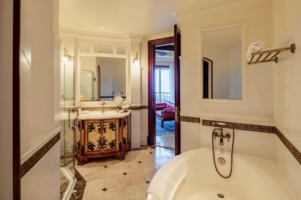 Phòng Deluxe Giường Đôi Nhìn Ra Biển - The Imperial Hotel & Resort - Diện tích: 43m2 - Giường: 1 giường đôi lớn - Hướng: Tầm nhìn ra biển - Ban công Kiến trúc của khách sạn mang đậm nét phương Tây cổ điển theo kiểu những tòa lâu đài nguy nga thời nữ hoàng Victoria. 350 phòng nghỉ với diện tích đa dạng được trang trí bao bọc bằng giấy dán tường viền gỗ rất trang nhã, điểm thêm những bức tranh nổi tiếng thời nữ hoàng Victoria. Tiện nghi trong phòng được trang bị cao cấp theo tiêu chuẩn 5 sao với phòng tắm rộng rãi và bồn tắm riêng biệt. The Imperial Hotel & Resort - Hotline: 0254 3628 888 - Văn phòng Hồ Chí Minh: Tầng 12, Tòa nhà Petrro Vietnam, Số 1-5 Lê Duẩn, phường Bến Nghé, Quận 1, TP HCM - Địa chỉ tại Vũng Tàu: 159 Thùy Vân, Phường Thắng Tam, Thắng Tam, Vũng Tàu
