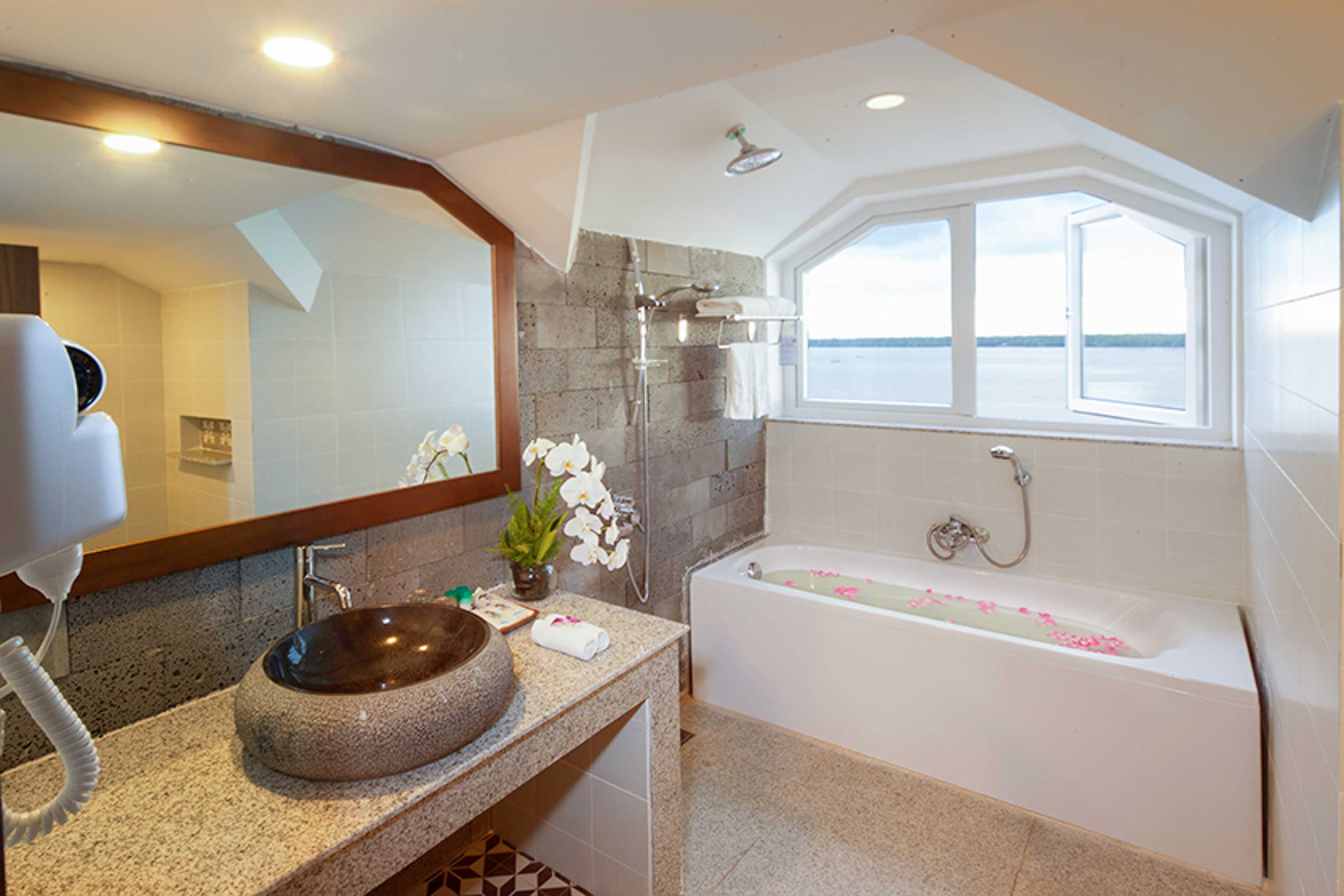 1. Thiết bị: Phòng tắm, Máy sấy, Áo choàng tắm, Đồ vệ sinh cá nhân miễn phí, Dép, Bồn tắm và vòi sen riêng, Khăn tắm, Điện thoại trong phòng tắm.