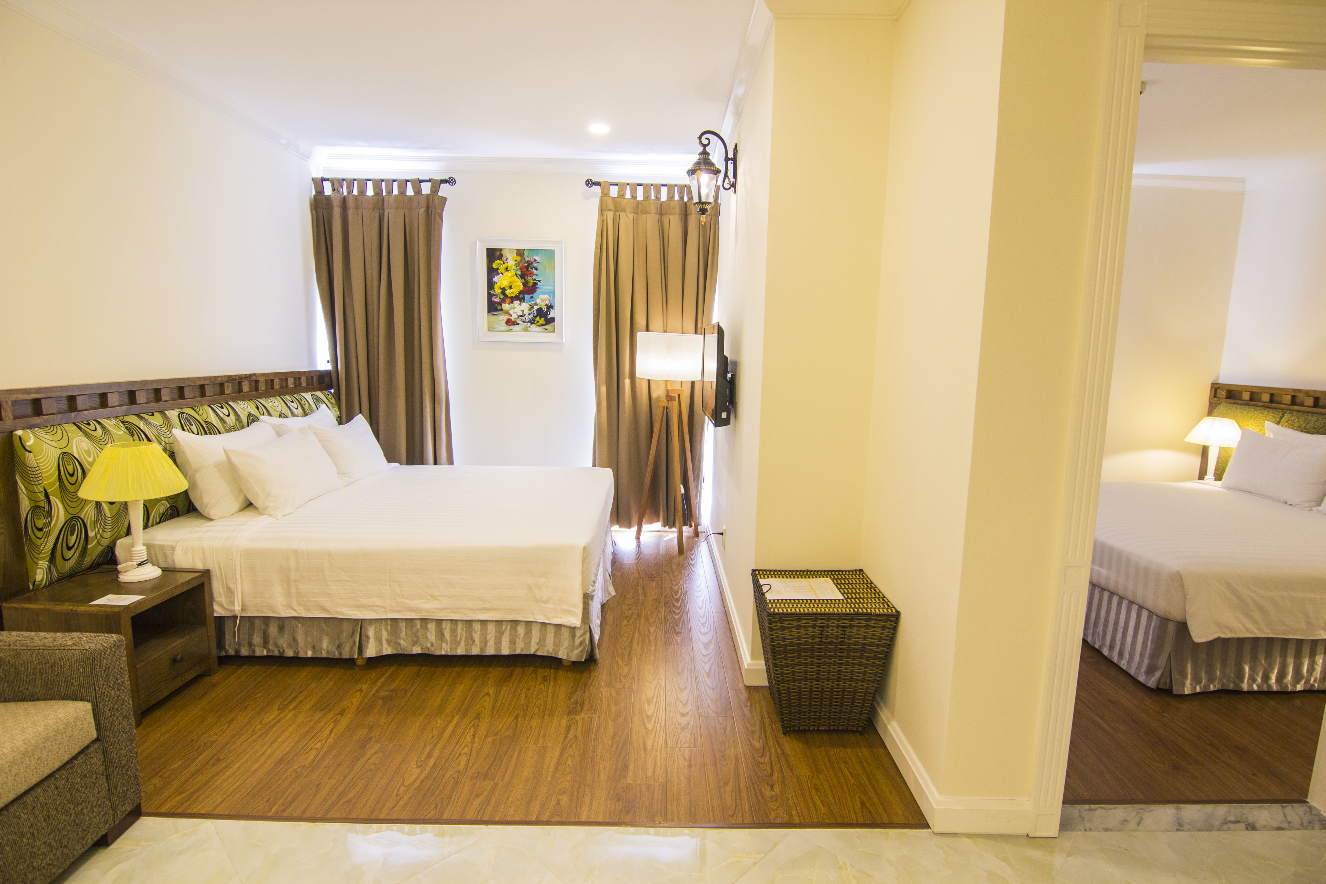 Phòng Deluxe Family 2 bedroom được trang trí với nội thất sang trọng và tông màu ấm cúng, tạo nên môi trường dễ chịu và thân thiện.