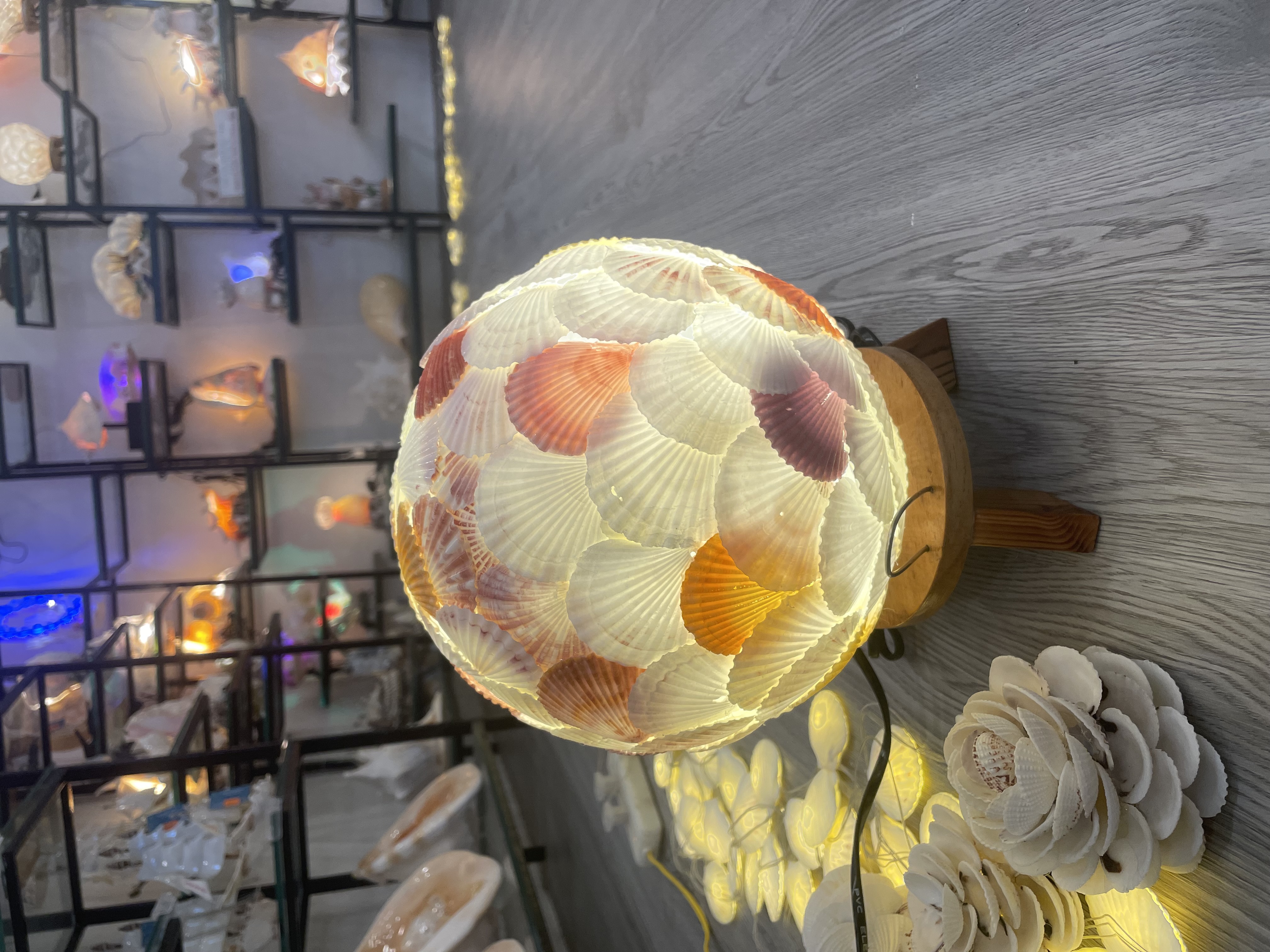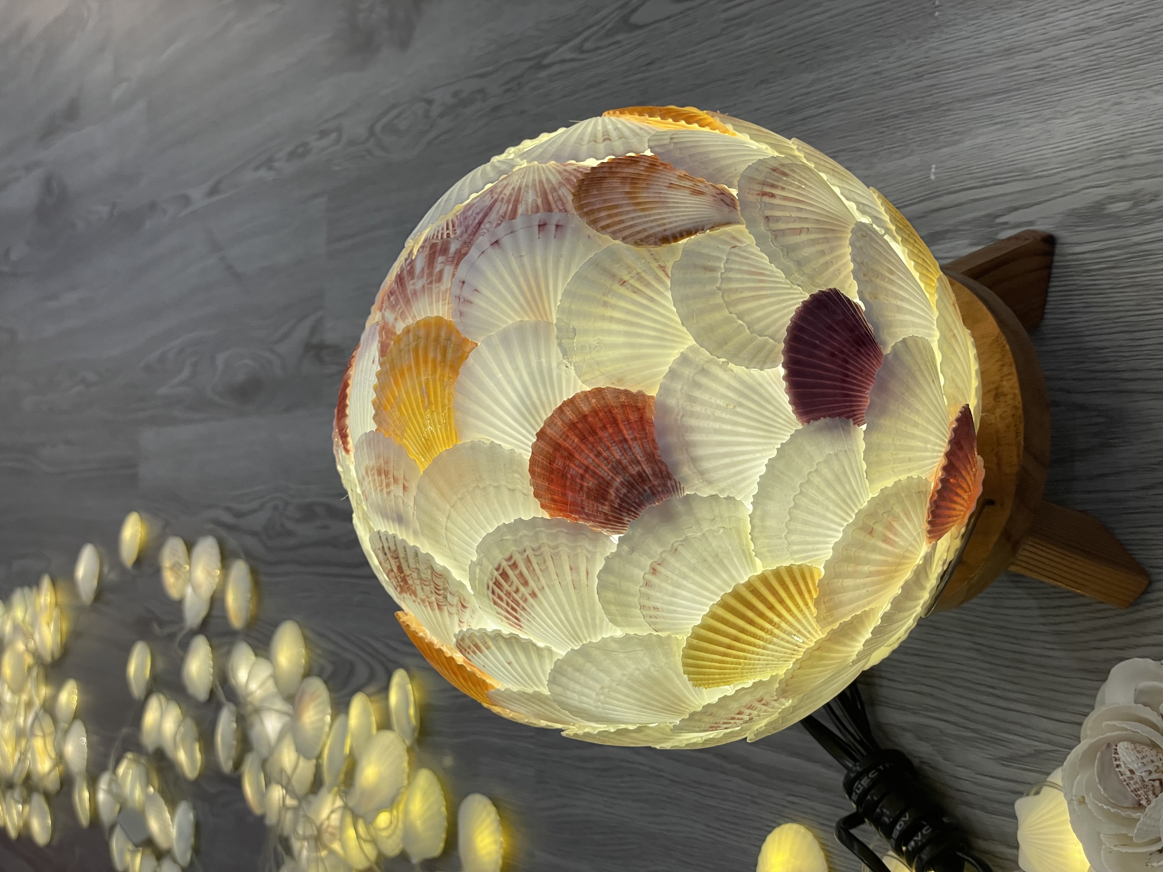 Đèn làm từ vỏ ốc biển - vỏ ốc điệp màu.