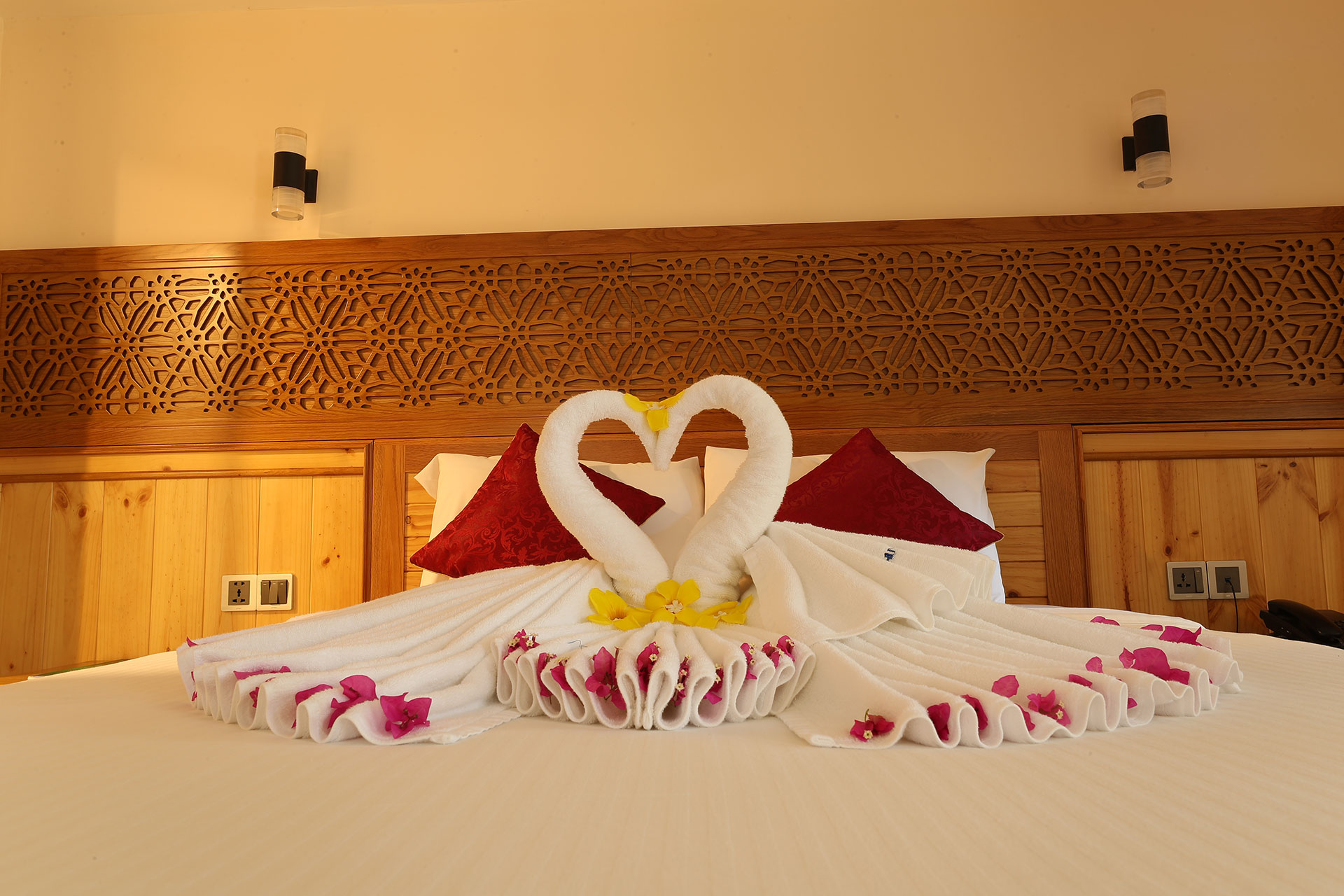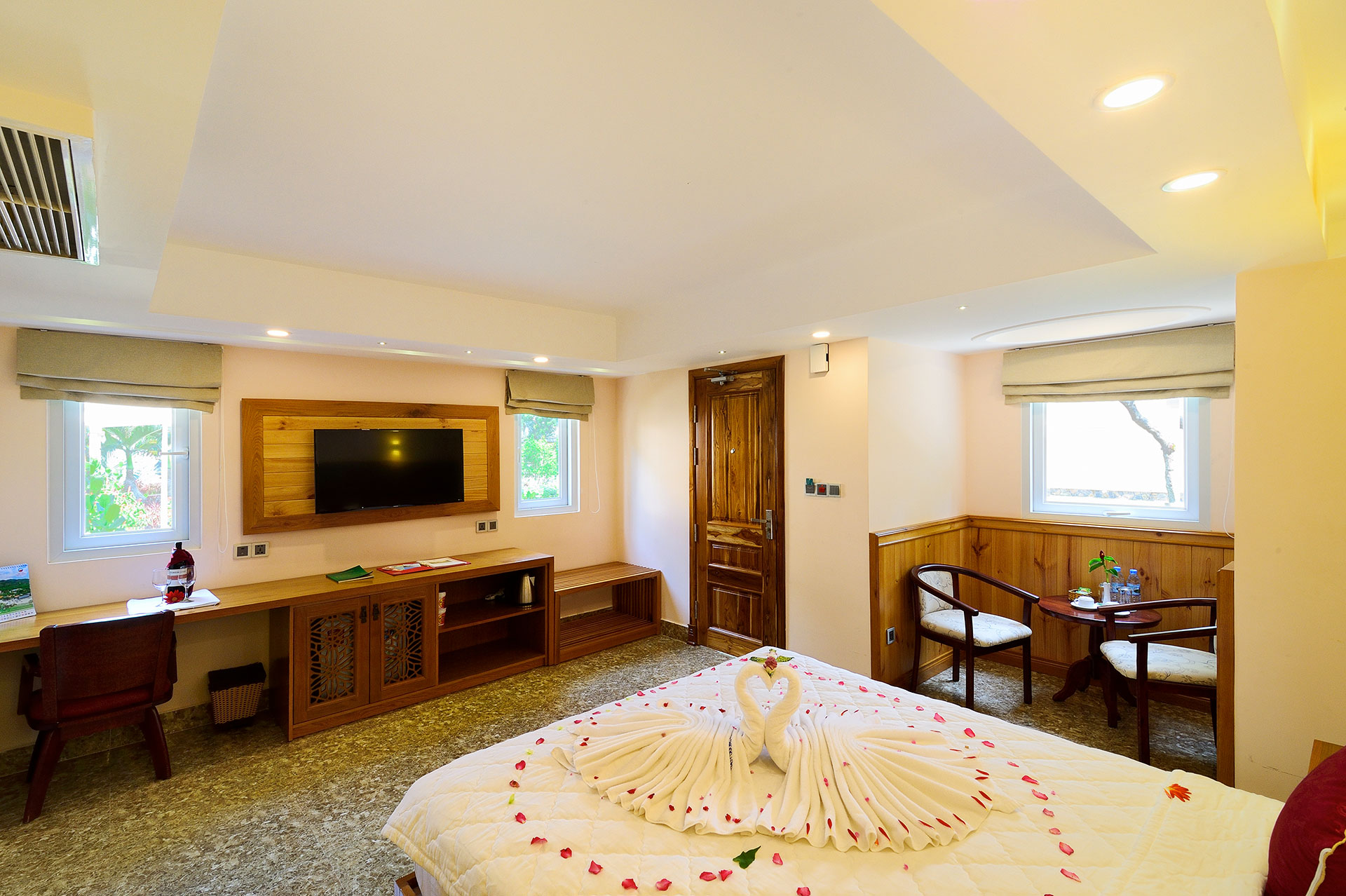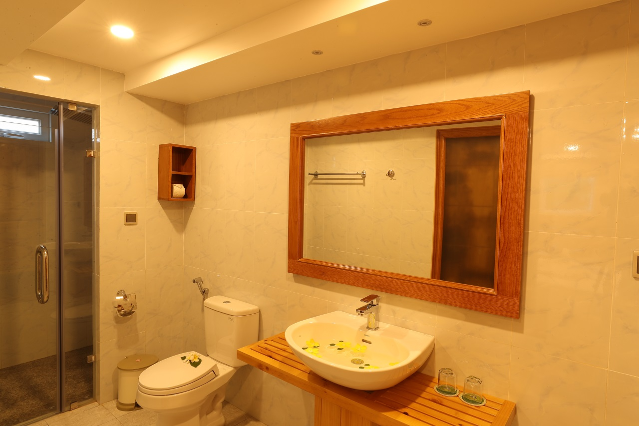 Phòng AN HÒA VILLA - Trân Châu Beach & Resort – Diện tích tối thiểu: 25m2 – Phòng tiêu chuẩn 2 khách/phòng – Giường: 01 giường đôi – Phòng Garden View – Giá Phòng:Vui lòng liên hệ: Mr Trần Xuân Thanh – 0978 758 390 – Giờ nhận phòng lúc 14h – Trả phòng lúc 12h. – Phụ phí trả phòng muộn: 30% giá phòng đến 16h, 50% giá phòng đến 18h, sau 18h tính giá nguyên đêm. – Trẻ em từ dưới 09 tuổi (tối đa 2 bé) được miễn phí ngủ cùng giường với cha mẹ và không bao gồm ăn sáng. – Trẻ em dưới 5 tuổi: Miễn Phí. – Phụ thu ăn sáng cho trẻ em 5 – 9 tuổi: 70.000 vnd/1 bé/1 bữa. – Giá phòng bao gồm 10% VAT, điểm tâm sáng, trà, nước suối đặt phòng, hồ bơi nước ngọt, hồ bơi nước biển, ghế bố, chòi lá, sân tennis ban ngày, wifi. – Tiện ích: Mini bar, bình đun siêu tốc, mấy sấy tóc, tủ lạnh, két sắt, tivi, bàn, ghế, bồn tắm đứng. TRÂN CHÂU BEACH & RESORT Hotline: (+84 254) 3886 215 Email: sales@tranchaubeachresort.vn Địa chỉ: Tỉnh lộ 44A, TT Phước Hải, Đất Đỏ, Bà Rịa - Vũng Tàu