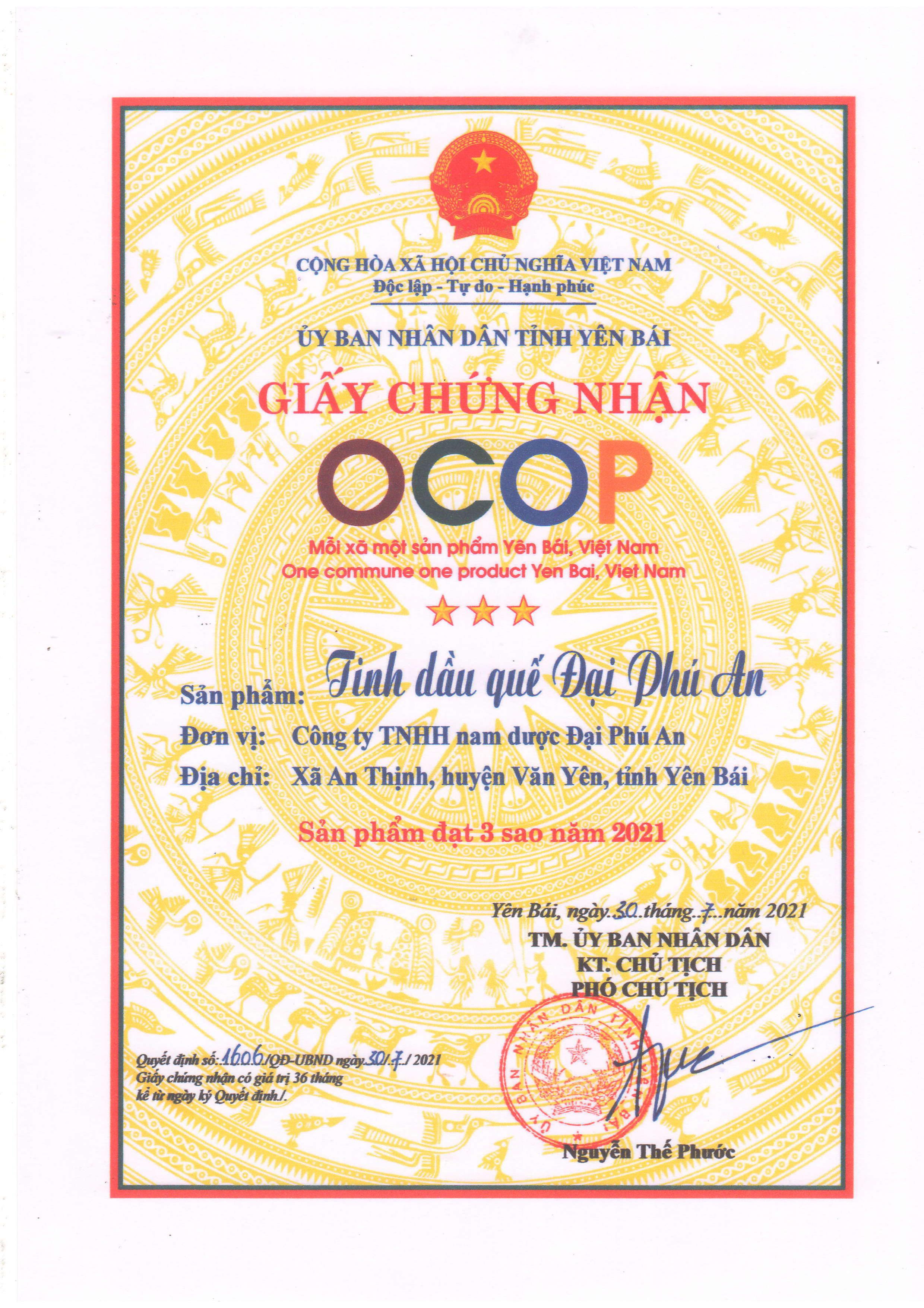 Yên Bái – Vùng trồng quế lớn và uy tín số 1 Việt Nam; có mùi hương thanh mát, dễ chịu và độc đáo. Sản phẩm đạt chứng nhận OCOP 3 sao của Tỉnh Yên Bái.