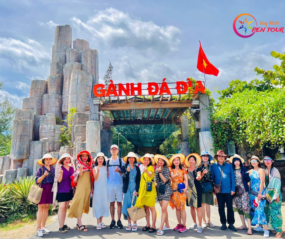 - 09h30: Đoàn đến Ghềnh Đá Đĩa, là một thắng cảnh thiên nhiên cấp quốc gia từ năm 1998. Cảnh sắc nơi đây luôn được ngợi khen vì những hình thù khác lạ của những khối đá. Chính điều này đã tạo ra một “sự hỗn loạn có chủ ý” của mẹ thiên nhiên.