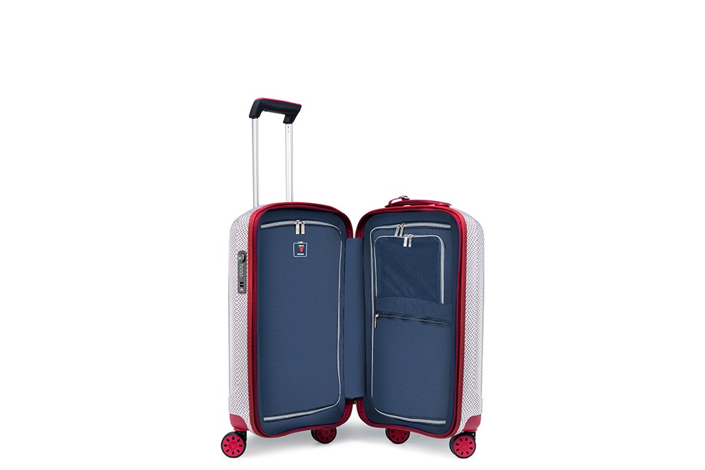 Vali Roncato We-Glam Texture 5 tấc (20 inch) - Red/White trang bị hệ thống túi lưới phân vùng cho 2 ngăn chính cùng khoá kéo thiết kế riêng góp phần hỗ trợ tối ưu đồ đạc bên trong theo chủ đích của người dùng.