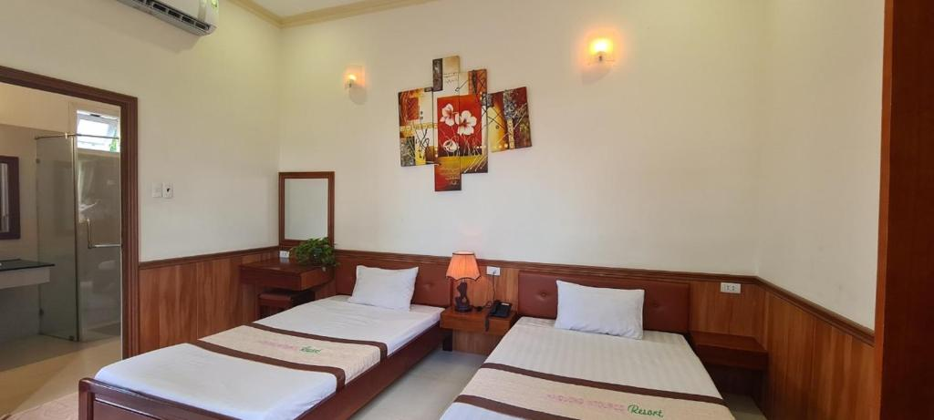 Biệt thự Deluxe - HaiDuong Intourco Resort - Diện tích: 30m2 - Giường: 2 giường đơn - Hướng: Biển - Ban công/ Hiên/ Sân trong - Sử dụng Executive Lounge Nằm dọc theo bờ biển Vũng Tàu, HaiDuong Intourco Resort cung cấp chỗ nghỉ trang nhã, thoải mái với truy cập Wi-Fi miễn phí trong toàn khuôn viên. Nơi đây có khu vực bãi biển riêng, hồ bơi ngoài trời và trung tâm thể dục. Với sàn lát gạch, các phòng máy lạnh tại đây được trang bị tủ quần áo, giá treo quần áo, két an toàn, minibar và TV truyền hình cáp màn hình phẳng. Phòng tắm riêng đi kèm tiện nghi vòi sen, máy sấy tóc, dép và đồ vệ sinh cá nhân miễn phí. Đội ngũ nhân viên thân thiện tại quầy lễ tân 24 giờ của HaiDuong Intourco Resort có thể hỗ trợ quý khách với dịch vụ cho thuê xe đạp/xe hơi, giặt là và giữ hành lý. Phòng xông hơi khô, dịch vụ mát-xa và tiện nghi hát karaoke cũng được cung cấp tại đây trong khi các tour du lịch được sắp xếp theo yêu cầu. Chỗ nghỉ này có nhà hàng phục vụ các món ăn ngon của địa phương ngay trong khuôn viên. Các bữa ăn cũng có thể được phục vụ ngay trong phòng nghỉ của khách để đảm bảo sự riêng tư. HaiDuong Intourco Resort - Hotline: 0254 3859 916 - Địa chỉ: 01 Thùy Vân, Phường 8, Thành phố Vũng Tàu, Bà Rịa - Vũng Tàu