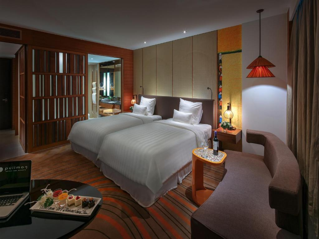 Phòng Executive 2 Single Beds - Club Lounge Access - Khách sạn Pullman - Kích thước phòng 40 m² - Giường: 2 giường đơn - Hướng: Thành phố - Sử dụng Club Lounge Access - WiFi miễn phí - Minibar Với tầm nhìn ra thành phố hoặc biển, phòng giường đôi này có khu vực tiếp khách với máy pha cà phê espresso, TV thông minh màn hình phẳng 40 inch và tiện nghi pha trà/cà phê. Phòng tắm riêng đi kèm vòi sen. Đồ vệ sinh cá nhân hiệu C.O. Bigelow được cung cấp cho khách. Khách sạn Pullman - Bộ phận đặt phòng thông qua số điện thoại: 84 (254) 355 1777 - Địa chỉ: 15 Thi Sách, phường Thắng Tam TP Vũng Tàu, Bà Rịa Vũng Tàu