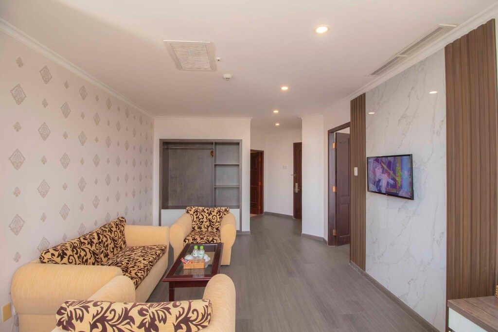 Phòng Suite - PT Hotel Vung Tau - Diện tích 48m2 - Giường: 1 giường đôi lớn - Hướng: Biển Các tiện nghi trong phòng bao gồm dịch vụ phòng 24 giờ, dịch vụ phòng và dọn phòng hàng ngày, để bạn có thể thư giãn và tận hưởng kỳ nghỉ của mình. Hút thuốc bị hạn chế trong các khu vực hút thuốc được chỉ định. Trải nghiệm tiện nghi phòng chất lượng cao trong thời gian bạn lưu trú tạiKhách sạn P&T Vũng Tàu . Khách sạn cung cấp rèm cản sáng và máy lạnh trong một số phòng nhằm mang lại lợi ích cho khách. Một số phòng được chọn có TV và truyền hình cáp để giúp khách giải trí. Khách sạn còn cung cấp cho du khách tủ lạnh, nước đóng chai, máy pha cà phê hoặc trà, cà phê hòa tan, trà hòa tan và tủ lạnh mini trong một số phòng. Khách sạn P&T Vũng Tàu cũng cung cấp máy sấy tóc, đồ vệ sinh cá nhân, áo choàng tắm và khăn tắm trong phòng tắm cho một số phòng chọn lọc. PT Hotel Vung Tau - Hotline: 0254 3511 511 - Địa chỉ: 158 Hạ Long, Phường 2, Thành phố Vũng Tầu, Bà Rịa - Vũng Tàu