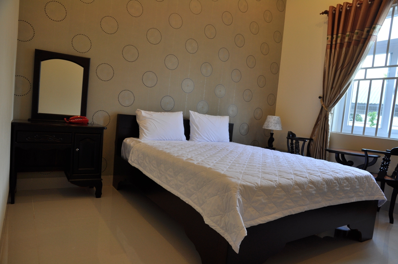 Phòng đôi - Khách sạn Tân Duy Diện tích phòng: 34m2 Phòng gồm 1 giường đôi 1m8 Máy lạnh Tivi truyền hình cáp trên 70 kênh Điện thoại IDD Bồn tắm, tắm nóng lạnh Máy sấy tóc Bình đun nước nóng Cửa sổ thoáng mát VIEW đẹp Phòng nghỉ tại khách sạn được trang bị đầy đủ tiện nghi, cửa sổ thoáng mát Khách sạn Tân Duy - Địa chỉ:208 Đường 27 Tháng 4, KP Phước Tiên, Phước Bửu, Xuyên Mộc, BRVT - SDT: 84-0643.777879 - 0903 039 616 - Email: info@tanduyhotel.vn - Website: tanduyhotel.com.vn