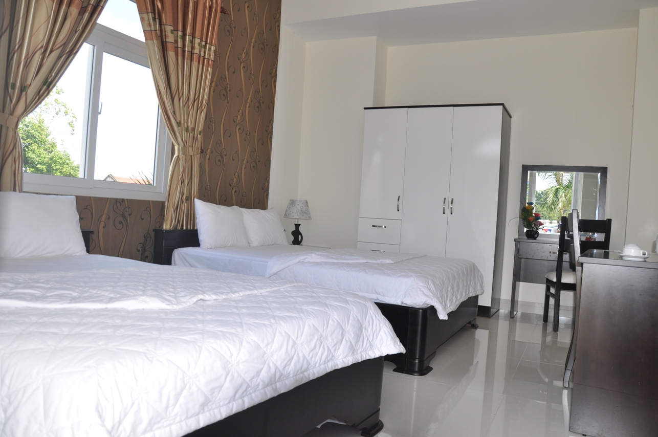 Phòng đôi - Khách sạn Tân Duy Diện tích phòng: 42m2 Phòng gồm 2 giường 1m6 Máy lạnh Tivi truyền hình cáp trên 70 kênh Điện thoại IDD Bồn tắm, tắm nóng lạnh Máy sấy tóc Bình đun nước nóng Cửa sổ thoáng mát Phòng nghỉ tại khách sạn được trang bị đầy đủ tiện nghi, cửa sổ thoáng mát Khách sạn Tân Duy - Địa chỉ:208 Đường 27 Tháng 4, KP Phước Tiên, Phước Bửu, Xuyên Mộc, BRVT - SDT: 84-0643.777879 - 0903 039 616 - Email: info@tanduyhotel.vn - Website: tanduyhotel.com.vn