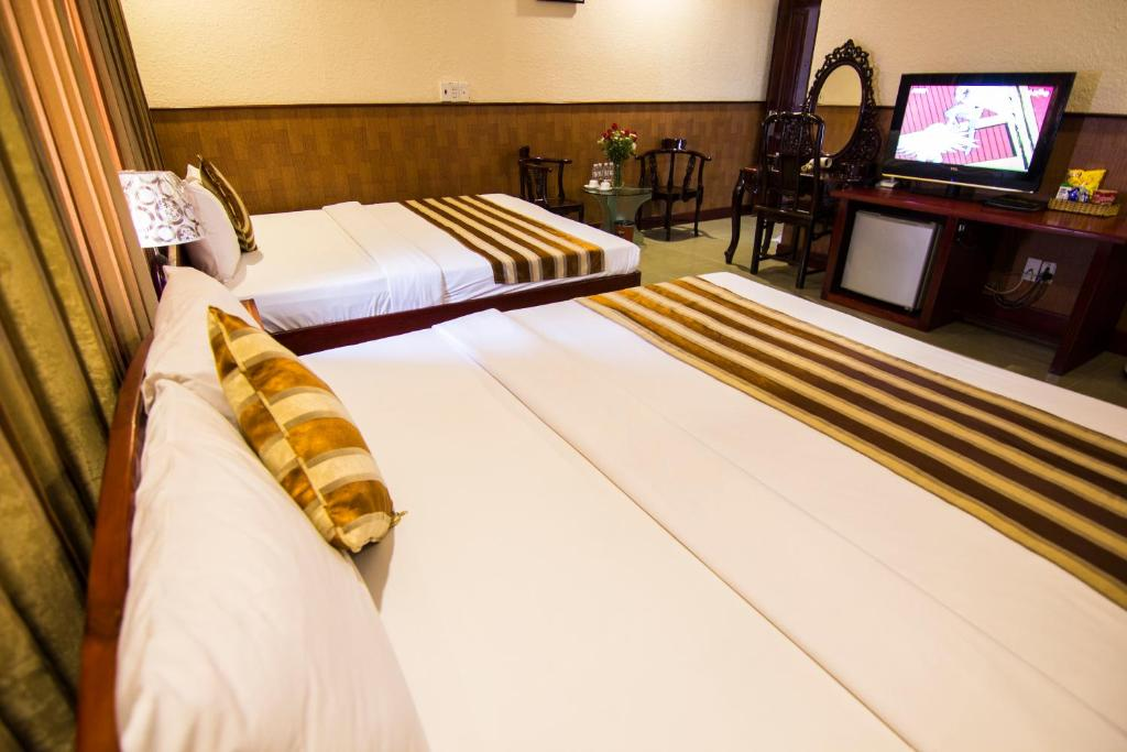Phòng Gia Đình - Khách Sạn Kiều Anh Vũng Tàu - Diện tích: 40m2 - Giường: 2 giường đôi lớn - Ban công - Hướng: thành phố Kieu Anh Hotel là 1 nơi nghỉ gồm 6 tầng với Wi-Fi miễn phí và chỗ đỗ xe miễn phí. Các liệu pháp mát-xa và phòng karaoke cũng có sẵn. Nhà hàng Premier Restaurant phục vụ các món ăn Phương Tây và Châu Á cũng như bữa sáng tự chọn hàng ngày. Các phòng không hút thuốc tại đây đều được trang bị máy lạnh, TV màn hình phẳng và lò vi sóng. Một số phòng có tầm nhìn ra quang cảnh thành phố. Phòng tắm riêng có vòi sen/bồn tắm. Khách Sạn Kiều Anh Vũng Tàu - Hotline: 0254 3563 333 - Địa chỉ: 257 Lê Hồng Phong, Phường 8, Thành phố Vũng Tàu, Bà Rịa - Vũng Tàu