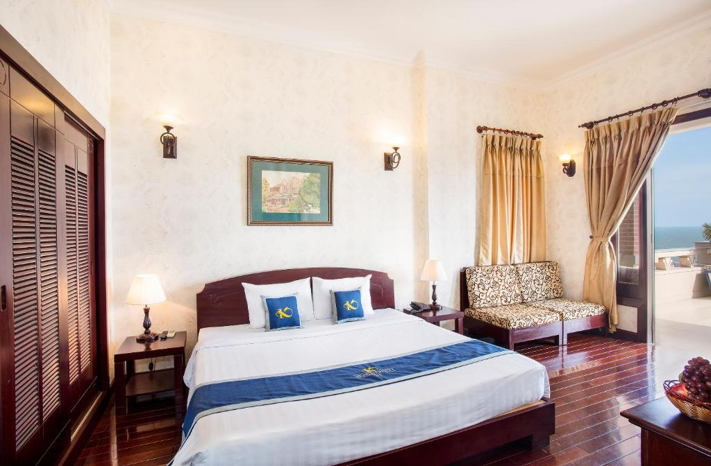 Phòng Suite - Khách sạn Kỳ Hoà - Diện tích: 60m2 - Phòng ngủ: 1 giường đôi cực lớn và 1 giường đôi lớn - Phòng khách: 1 giường sofa Với tầm nhìn ra cảnh biển từ ban công, suite này có khu vực sinh hoạt. Suite còn đi kèm với máy lạnh, bàn làm việc, minibar và phòng tắm riêng với máy sấy tóc. Khách sạn Kỳ Hòa Vũng Tàu có quầy lễ tân 24 giờ và Nhà hàng Hoa Hồng phục vụ các món ăn Á -Âu cũng như đặc sản địa phương mỗi ngày. Các tiện nghi dành cho du khách khác gồm trung tâm dịch vụ doanh nhân và bàn bán tour. Dịch vụ xe đưa đón đến bãi biển được cung cấp miễn phí theo lịch trình của khách sạn. Xe đưa đón miễn phí từ Cảng tàu tốc hành đến khách sạn có thể được bố trí cho khách. Khách sạn Kỳ Hoà - Hotline: 0254 3852 579 - Địa chỉ: 30-32 Trần Phú, Phường 1, Thành phố Vũng Tàu, Bà Rịa - Vũng Tàu