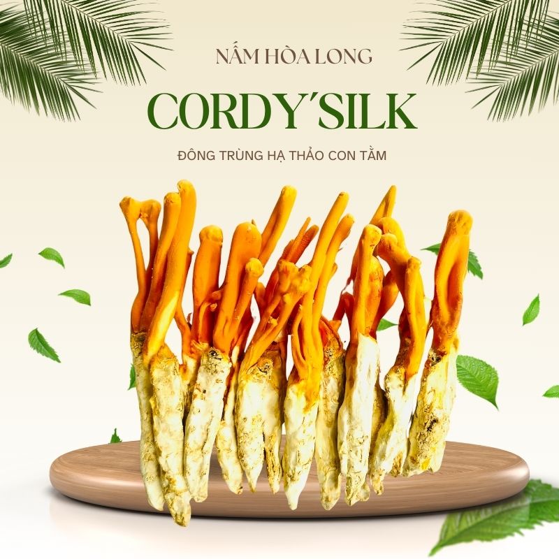 Cordy'Silk là Đông trùng hạ thảo mọc trực tiếp trên con tằm, có màu cam của cọng nấm và màu trắng của con tằm. Hàm lượng cao Adenosine 6,44 mg/kg và Cordycepin 14122 mg/kg. Chứa nhiều acid amin, vitamin và các khoáng chất khác. Đã được sấy thăng hoa để giữ nguyên được hương vị.