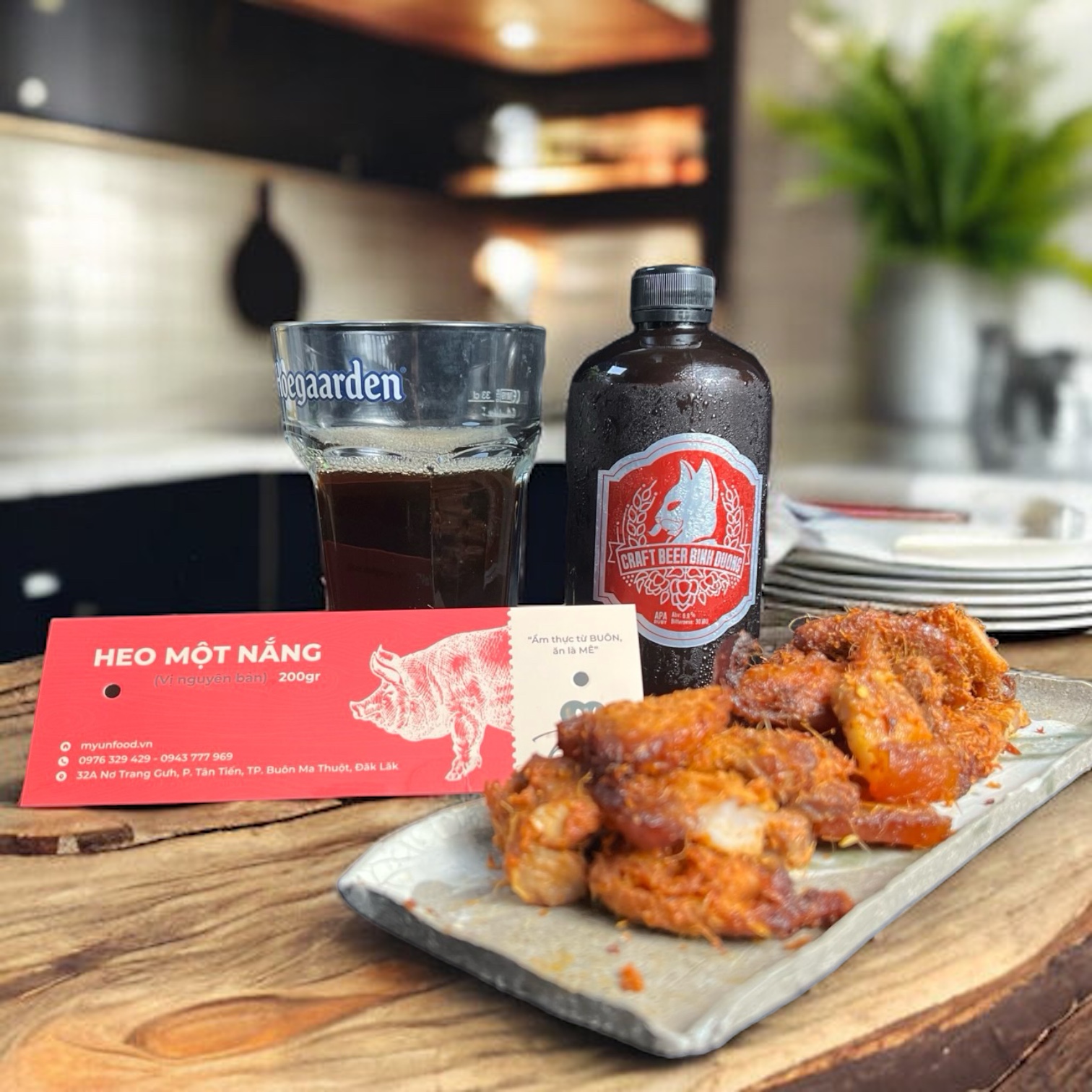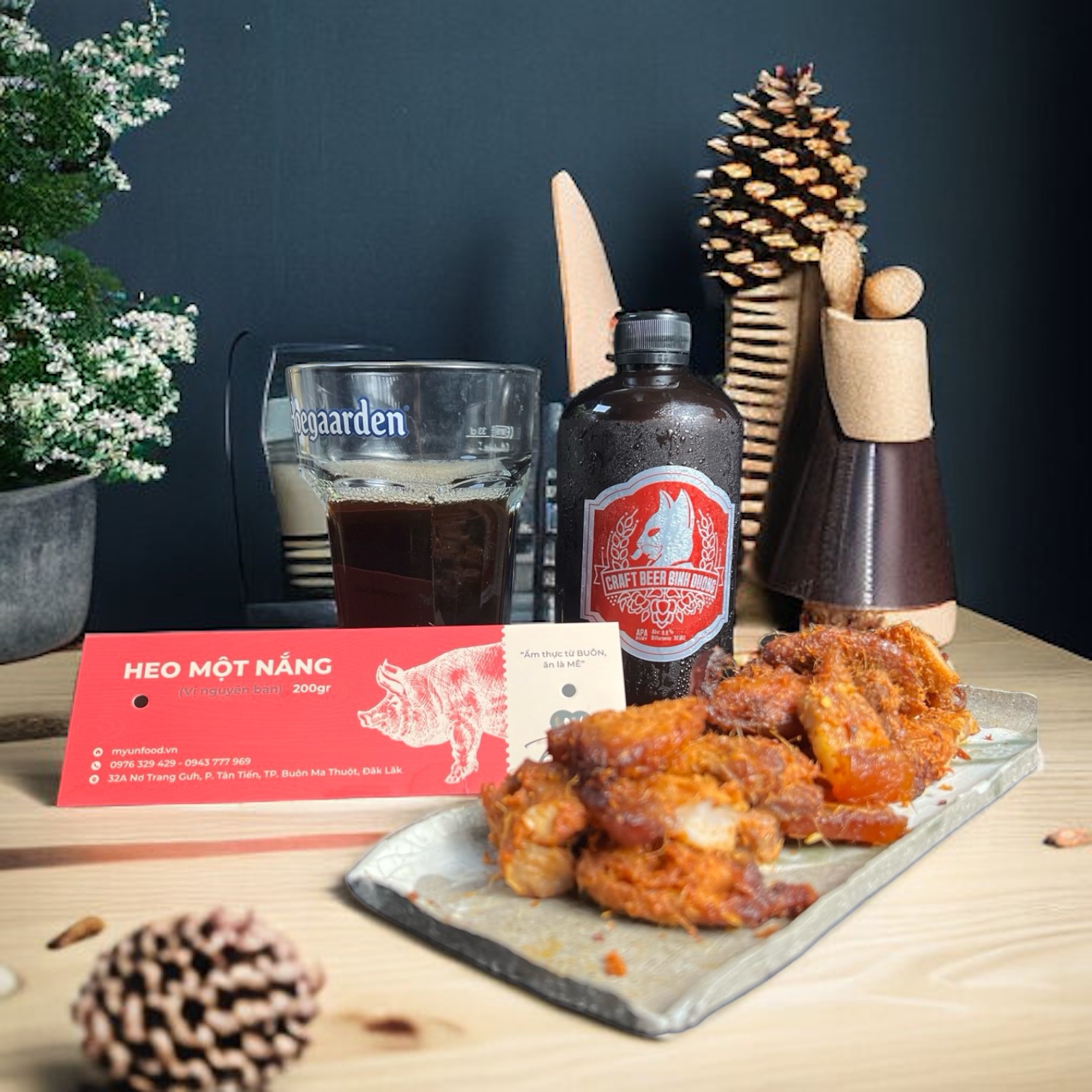 - Thịt ba chỉ heo tươi sau khi sơ chế và xử lý vệ sinh sạch sẻ, được ướp với các gia vị tự nhiên đặc trưng của Tây Nguyên. Sau đó được sấy dưới nhiệt độ 1 ngày nắng cho gia vị thấm đều hòa quyện trong thịt, đóng gói hút chân không ngay sau khi ra lò nên giữ được vị tươi ngon chất lượng của thịt.