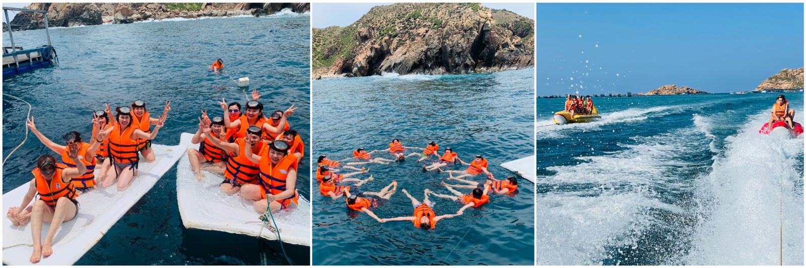 Tại đây Quý khách thỏa thích tham gia các trò chơi cảm giác mạnh như phao chuối, moto nước hay phao thú (chi phí tự túc)