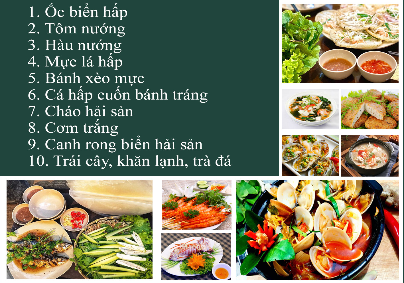 11h30: Cano chở cả đoàn quay về nhà hàng tại Nhơn Hải nghỉ ngơi và dùng bữa trưa. Cả đoàn tắm nước ngọt và thay quần áo để chuẩn bị dùng bữa trưa. Đầu bếp đã chuẩn bị sẵn thức ăn, chỉ chờ cả đoàn ngồi vào bàn là sẽ được thưởng thức.