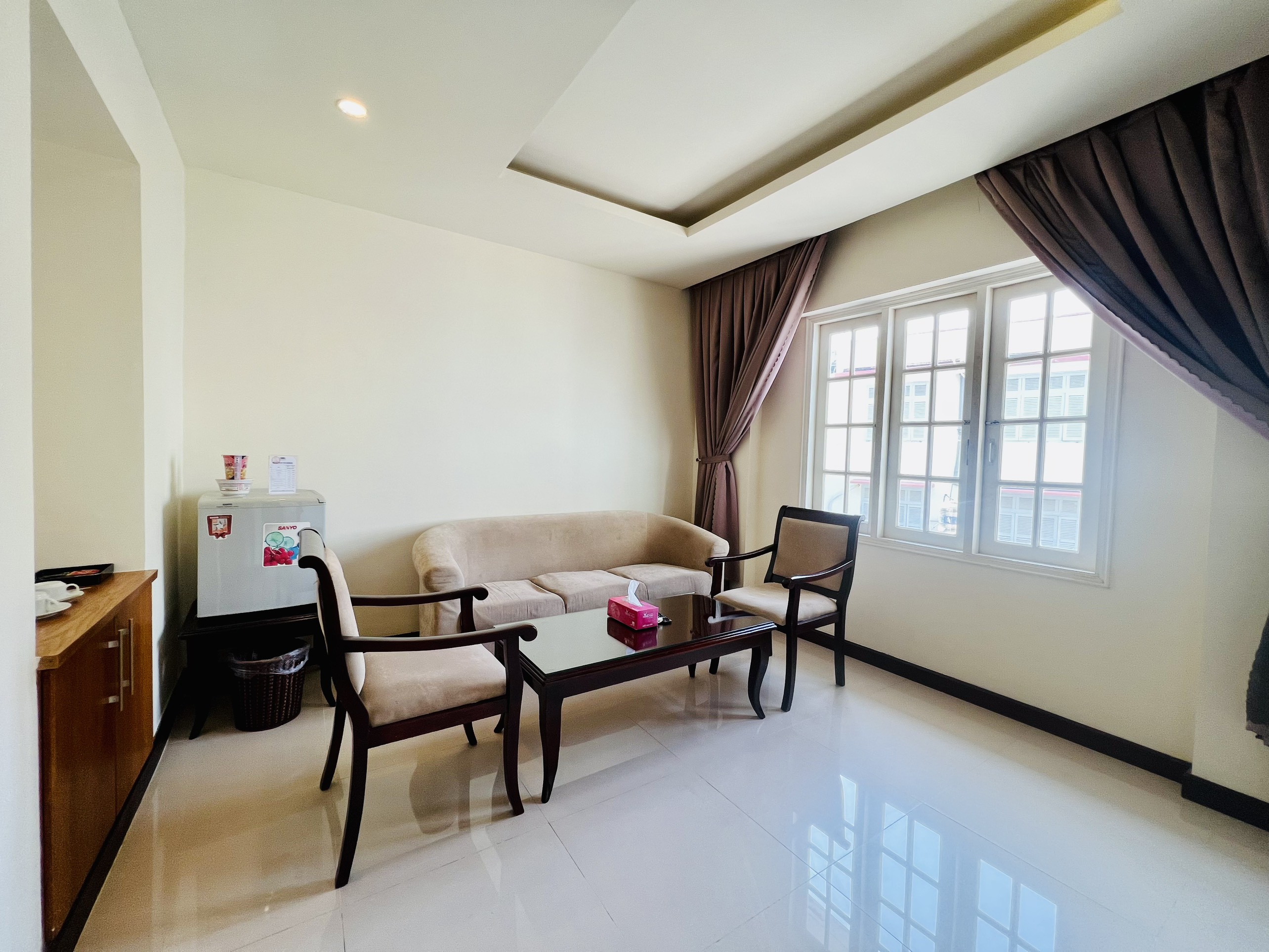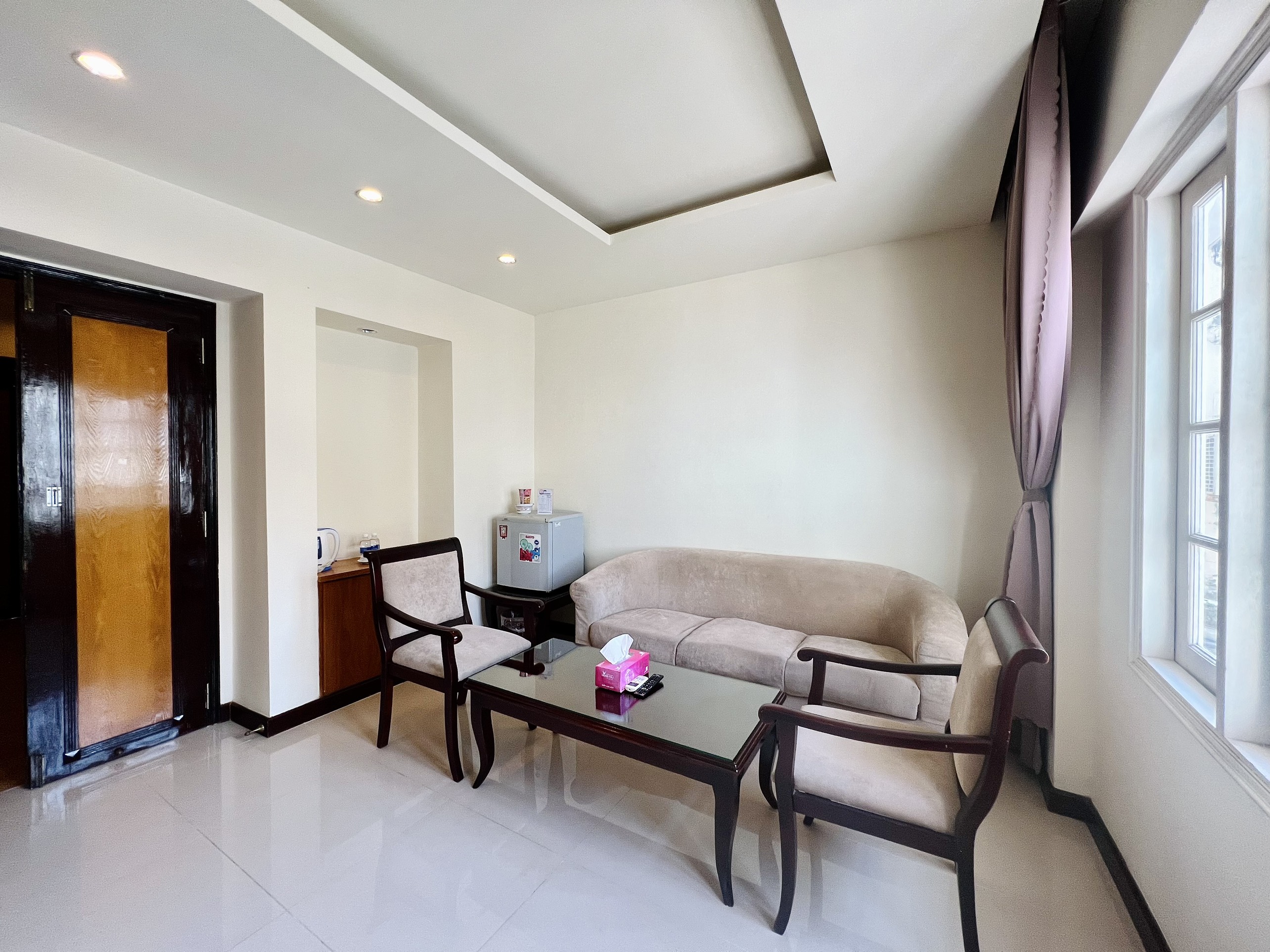 Phòng cao cấp với diện tích 40m2 giường đôi giành cho 2 người lớn và 1 bé nhỏ với thiết kế sang trọng, đẹp mắt. Phòng được trang bị các trang thiết bị tiện nghi: minibar, máy lạnh và có phòng để tiếp khách,...