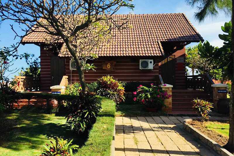 Diện tích phòng HONEYMOON VILLA của HaiDuong Intourco Resort: 50m2. Ban công hướng biển, sân gạch.