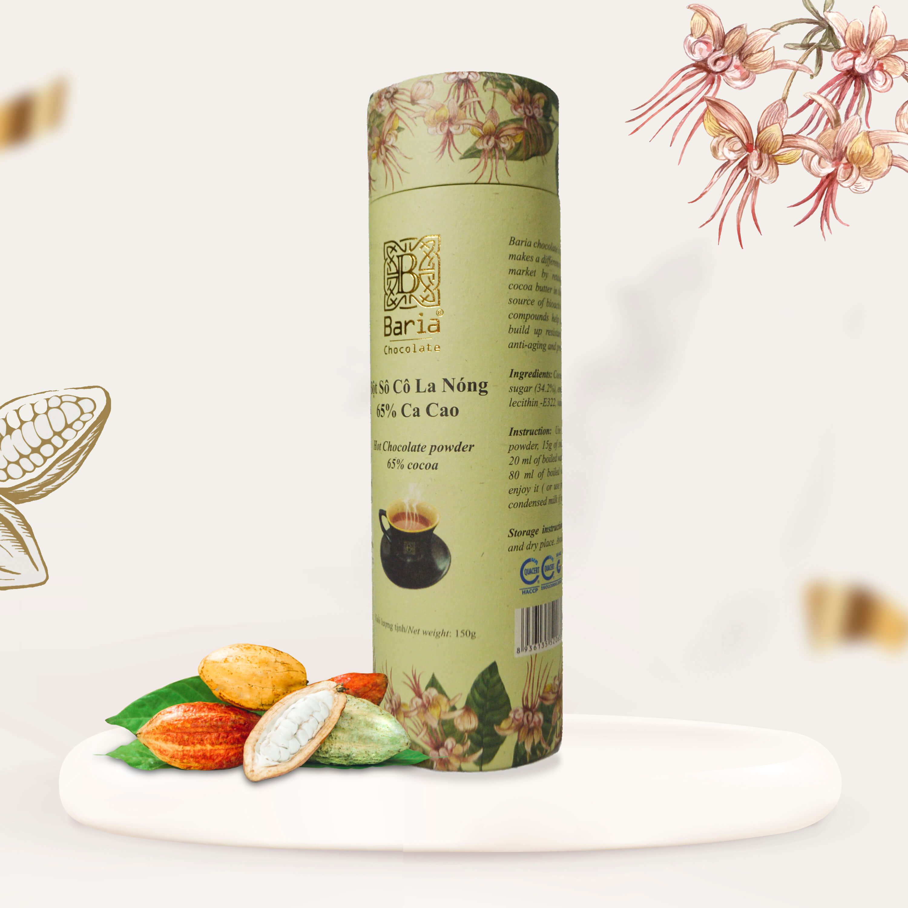 Thành phần : Ca cao (65%), đường ( 34.2%), chất nhũ hóa: Lecitin đậu nành - E322, hương vanilla.