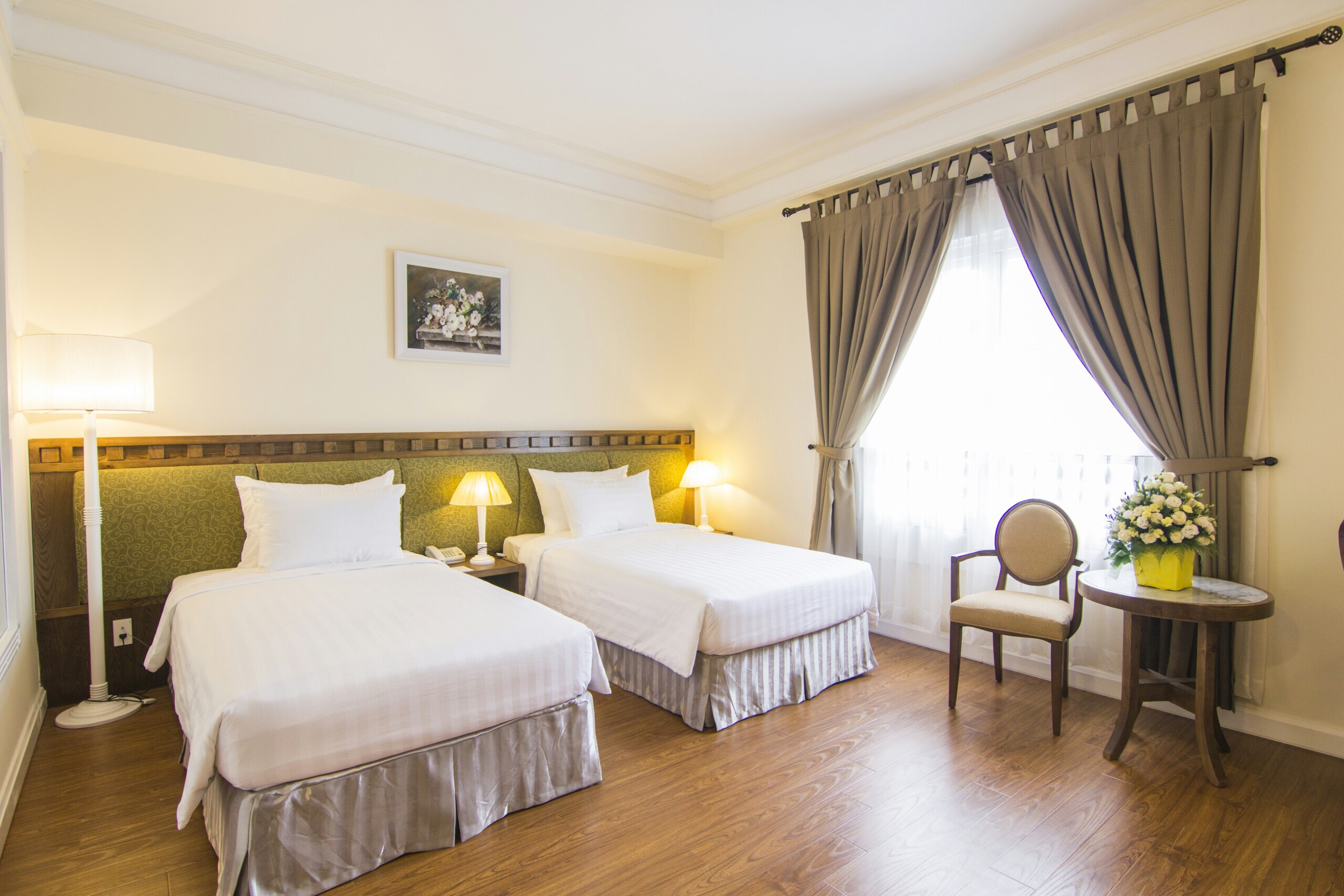 Phòng được trang bị đôi giường Twin tiện nghi, với bộ chăn ga gối thoải mái để đảm bảo giấc ngủ êm dịu và thư giãn. Bài trí nội thất được chọn lựa cẩn thận, với tông màu ấm áp và đèn trang trí tạo nên không gian thoải mái và dễ chịu.